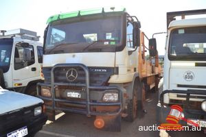 2007 MERCEDES ACTROSS 3244 TRAY TOP WHITE 8X4, AUTO P/S, A/C, 6 CYLINDER DIESEL, HIAB 1440D CRANE, BULLBAR, DRILL ROD HOLDERS, GRAB RAILS, REG NO - KBC17238 (LIC 31/7/15) ODO - 171,085KMS SHOWING, ENG NO - 54194600542965, VIN NO - WDB9303062L253683, (ASSET NO - ST050) (KEY-101) (W-)