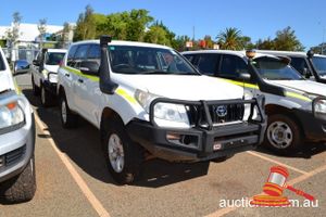 2009 TOYOTA PRADO WAGON WHITE 4X4 AUTO P/S A/C 3.0L D4D ROOBAR SPOTLIGHTS TOWBAR REG# 1DDS703 (LIC 23/2/15) ODO 111,241 KMS SHOWING ENGINE NO (1KD1903259) VIN (JTEBZ29J500195370) ASSET NO (PP048) DISPOSAL NO (AA082) KEY NO 97 (W4190)