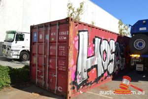 20FT RED/BROWN SEA CONTAINER (NO ID #) CONTAINING ASSORTED CONDUIT, STREET LAMP ARMS, DISTRIBUTION BOXES AND LIGHTS/ LAMPS