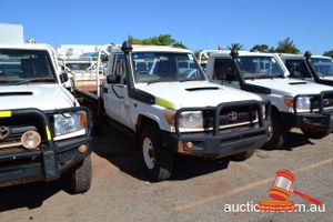01/2011 TOYOTA 79 SERIES TRAY TOP WHITE 4X4, V8 DIESEL ROO BAR, SPOTLIGHTS, SIREN, DBLV SIDED, SPRING LOADED TOOL BOX, REG NO - (UNLIC) ODO - 219,405KMS SHOWING, ENG NO - 1VD0108705, VIN NO - JTELV71J800019454, P/NO-03H5450, (S44#37546) (DR#63005) (KEY-90) (W4343)