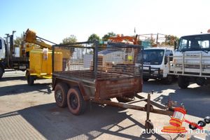 TRAILERS: '13 McPhee Boxload Triaxle Semi Container Side Loader Trailer, 2x 6X4 Enclosed Boxtop, Single Axle Boat Trailer, 8x5 Cage Tandem.