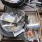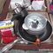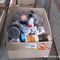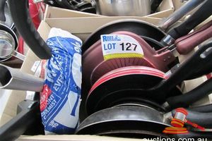 BOX OF KETTLES, IRON & KITCHEN WARE (USED)
