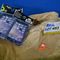 A STAMPED 9CT YELLOW GOLD, 1 BLUE STONE & 14 DIAMOND RING WITH 1 CENTRAL SQUARE BLUE STONE OF 10MM DIAM. & 14 SINGLE CUT DIAMONDS OF 0.005CT EACH APPROX. , BEAD SET & WHICH WEIGHS 4.6GRAMS.(VALUATION $150.00) (IR - 060115 1539 14379/109) (KF5627)