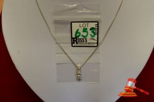 A STAMPED 9CT WHITE GOLD, 3 DIAMOND PENDANT & A STAMPED SILVER CHAIN, BROKEN. 3 BRILLIANT CUT DIAMONDS WEIGH BETWEEN 0.06CT - 0.17CT EACH APPROX., CLAW SET IN A 3 CIRCLET DESIGN & WEIGHS 1.2GRAMS. TOTAL WEIGHT OF 3.5GRAMS.(VALUATION $300.00) (IR - 060115 1539 14379/125) (KF5628)