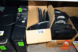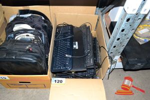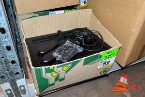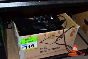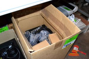 BOX INCL UNTESTED SAMSUNG PB-990R VIDEO CASETTE PLAYER W/ AC CORD & VIDEO/AUDIO CORDS; CANON CANOSCAN LIDE 25 SCANNER UNTESTED, NO CORDS; 3x UNTESTED GENERIC 7" DIGITAL PHOTO FRAMES W/ STANDS, NO AC ADAPTERS OR REMOTES; ASSORTED MOUNTS; SENSORS & COMPUTER MICROPHONES