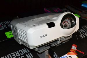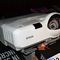 EPSON EB-420 LCD MULTIMEDIA PROJECTOR W/ ATTACHED CEILING MOUNT AC CORD 677 NORMAL LAMP HRS, 0 ECO LAMP HRS VGA/HDMI/S-VID/VID SN: QCLF270077L