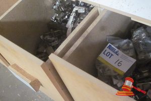 CONTENTS OF 7 DRAWERS & UNDER SHELF STORAGE INCLUDING VARIOUS SIZE CUPBOARD DOOR HINGES & DOOR SLIDERS