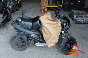 ADLY MOTO SCOOTER, BLACK, REG # (UNLIC) VIN # (NOT SIGHTED), LARGE AMOUNTS OF BODY KIT NOT CONNECTED, BODY KIT DAMAGE, FRONT WHEEL STEERING LOCK, SPRAY PAINTED BLACK (220416 0840 15345/0004)