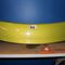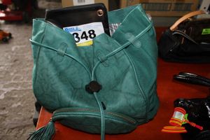 BLACK LEATHER BAG CONTAINING A YELLOW BOWING BALL, THE ANGLE BRANDED (160316 1210 15401/0001)