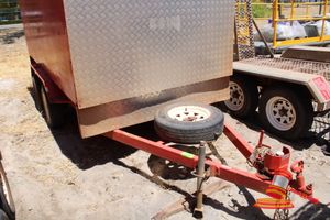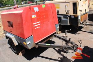 - TRAILER MOUNTED AIR COMPRESSOR, MAKE UNKNOWN, RED, SINGLE AXLE, REG# UNLIC, ODO# 4749 HRS SHOWING