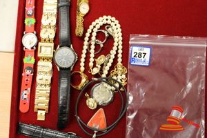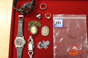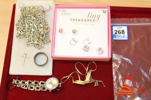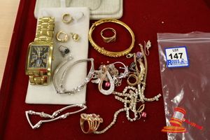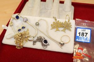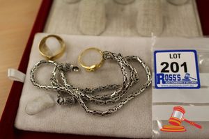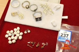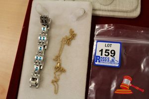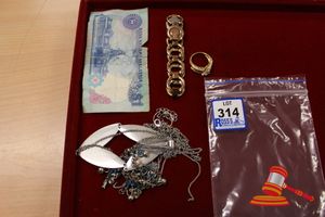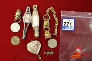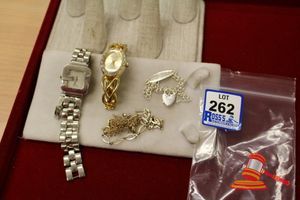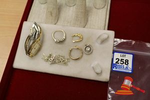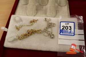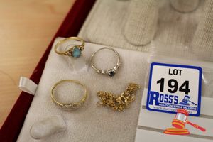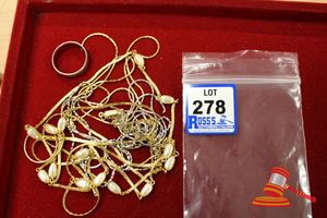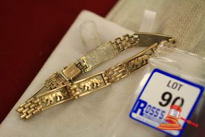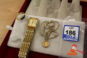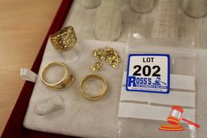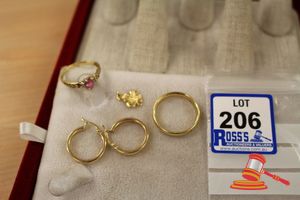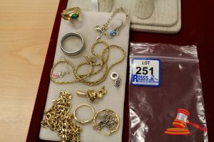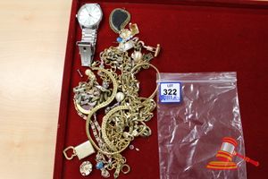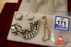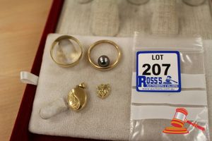 ASSORTED ITEMS, INCLUDING 1 X GOLD PLATED BRACELET & 3 X 9CT GOLD PIECES INCLUDING 1 BAND , 1 PENDANT & 1 BRACELET-BROKEN. WEIGHT OF GOLD IS 10.0GRAMS. (VALUATION $150.00) (KF - 7831) (IR - 201016 0940 14772/2)