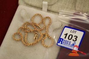 A TESTED YELLOW GOLD, CHAIN NECKLET. OF FINE ANCHOR LINK WHICH MEASURES 45CMS LONG INCLUDING 'S' HOOK CLASP & WEIGHS 4.2GRAMS. $190 KF7925 (IR - 130616 2004 83916/0020)