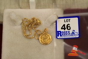 A STAMPED 22CT YELLOW GOLD, PISCES PENDANT & BOX CHAIN WHICH MEASURES 38CMS LONG INCLUDING 'S' CLASP & WHICH WEIGHS 7.2GRAMS $325 KF7920 (IR - 130616 2004 83916/0019)