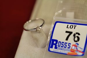 A STAMPED 9CT WHITE GOLD, 1 DIAMOND RING WITH 1 ROUND BRILLIANT CUT DIAMONDS OF 0.29CT APPROX., 4 CLAW SET ON A ROUNDED BAND & WHICH WEIGHS 2.0GRAMS (VALUATION $250.00) (KF - 7850) (IR - 100915 2040 14677/25)