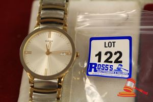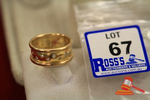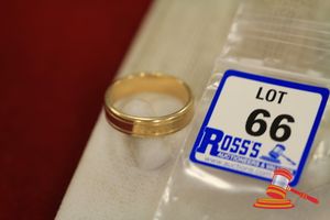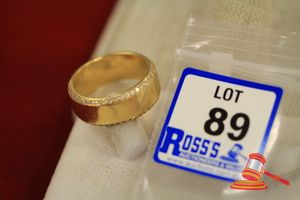 A STAMPED 10CT YELLOW GOLD, BAND RING, FLAT & CONTINUOUS WITH PARALLEL BORDER RAILS & WHICH WEIGHS 6.7GRAMS.(VALUATION $110.00) (KF - 7822) (IR - 131115 0750 12917/ 67)
