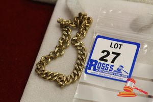 A STAMPED 9CT YELLOW GOLD, CHAIN BRACELET OF OPEN CURB LINK, WORN, WHICH MEASURES 24CMS LONG INCLUDING PARROT CLASP. & WEIGHS 13.2GRAMS. $200 KF7931 (IR - 221116 1334 88815/0003)