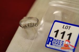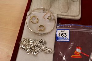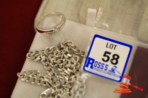 2 ITEMS. 1 = A STAMPED 18CT WHITE GOLD, 1 DIAMOND BAND RING WITH 1 ROUND BRILLIANT CUT DIAMOND OF 0.17CT APPROX., PART RUB OVER SET IN THE CONTINUOUS BAND WHICH WEIGHS 4.8GGRAMS. 1 = A STAMPED SILVER CHAIN NECKLET, BEVELLED CURB LINK WHICH MEASURES 56CMS LONG INCLUDING PARROT CLASP AND WEIGHS 29.2GRAMS $500 KF7908 (IR - 221016 1235 85818/0001)
