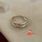 A STAMPED 18CT WHITE GOLD, DIAMOND BAMBOO DESIGN BAND RING WITH 7 ROUND BRILLIANT CUT DIAMONDs OF 0.04CT EACH APPROX. CHANNEL SET CENTRALLY IN THE CONTINUOUS BAND & WHICH WEIGHS 4.8GRAMS. $450 KF7906B (IR - 251116 1010 89102/0005)