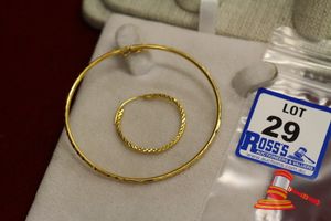 2 X TESTED YELLOW GOLD, PIECES, APPEAR ASIAN ORIGIN. 1 X EARRING & 1 X BANGLE. TOTAL WEIGHT OF 7.6GRAMS. $340 KF7922 (IR - 130616 2004 83916/0009)