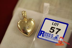 A STAMPED 10CT YELLOW GOLD, 1 DIAMOND SET HEART ENHANCER/PENDANT WITH 1 ROUND BRILLIANT CUT DIAMONDs OF 0.10CT APPROX., RUB OVER SET IN HOLLOWED DOME PIECE WITH A HINGED BAIL & WHICH WEIGHS 9.1GRAMS. $260 KF7912 (IR - 271016 2340 50587/0001)