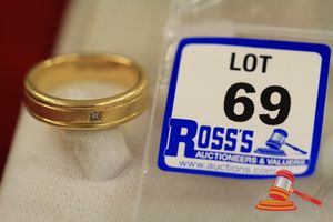 A STAMPED 18CT YELLOW GOLD, 1 DIAMOND SET BAND WITH 1 PRINCESS CUT DIAMOND OF 0.05CT APPROX., SET IN THE CONTINUOUS & FLAT BAND WITH PARALLEL RAIL EDGES & WHICH WEIGHS 12.5GRAMS.(VALUATION $425.00) (KF - 7818) (IR - 131115 0750 12917/41)