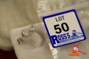 A PAIR STAMPED 18CT WHITE GOLD, DIAMOND STUD EARRINGS TOTALING 2 ROUND BRILLIANT CUT DIAMONDS OF 0.67CT EACH ACTUAL & GIA INSCRIBED WITH COLOUR OF G/RARE WHITE & SI1 CLARITY & ARE 4CLAW BASKET SET WITH SCREW-ON STEMS & WEIGH 1.6GRAMS. $4700 KF7907B (IR - 251116 1010 89102/0004)