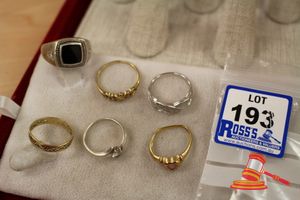 A TESTED YELLOW GOLD, WEDDER, CONTINUOUS & 1/2 ROUND & MISS SHAREN & WEIGHS 5.3GRAMS. $240 KF7921 (IR - 130616 2004 83916/0010)