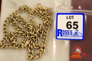 A STAMPED 9CT YELLOW GOLD, FOB CHAIN NECKLET. WITH GRADUATED CURB LINKS WHICH MEASURE 60CMS LONG INCLUDING 2 FOB PARROT CLASPS & WHICH WEIGHS 38.8GRAMS.(VALUATION $580.00) (KF - 7820) (IR - 131115 0750 12917/45)