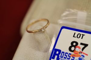 A TESTED YELLOW GOLD, 7 DIAMOND RING WITH 1 CENTRAL ROUND BRILLIANT CUT DIAMONDS OF 0.10CT APPROX. & 6 ROUND BRILLIANT CUT DIAMONDS OF 0.01CT EACH APPROX., BEAD SET THREE EACH SHOULDER & WHICH WEIGHS 1.3GRAMS (VALUATION $185.00) (KF - 7853) (IR - 140515 0230 12271/2)