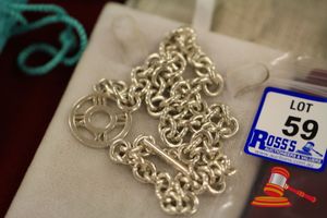 A STAMPED SILVER NECKLET & PACKAGING, STAMPED TIFFANY- NOT AUTHENTICATED, OF OPEN LINK & WEIGHS 59.3GRAMS.(VALUATION $100.00) (KF - 7816) (IR - 131115 0750 12917/23)