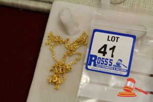 A STAMPED 22CT YELLOW GOLD, CHAIN NECKLET. BROKEN BANK LINK WHICH MEASURES 40CMS INCLUDING S HOOK CLASP & WHICH WEIGHS 4.1GRAMS.(VALUATION $125.00) (KF - 7826) (IR - 131115 0750 12917/80)