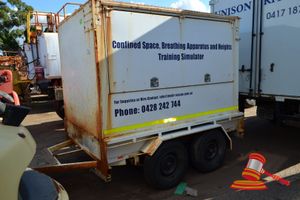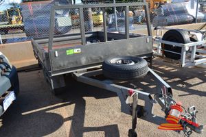 2000 GT FABRICATION BOX TOP TRAILER, GREEN, TANDEM AXLE WITH RAMPS 5' x 10' EXTENDED DRAW BAR (REG# UNLIC) VIN# 6T9T20WA1C0174010, TARE 520KG, MASS 2500 KG, (W6476)