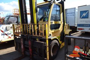 HYSTER H5.00DX FORKTRUCK, YELLOW, 2 AXLES, AUTO, DIESEL, (REG# UNLIC) ODO# 712.6 HRS SHOWING, CH# A232R03674F, 5.0T HYSTER FORKLIFT, SIDE SHIFT, ADJUSTABLE TYNES, FL# FLO35, KEY# 95 (W6700)