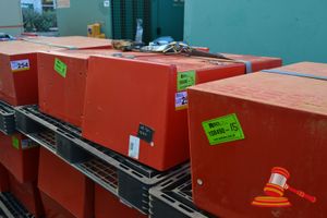 PALLET OF PORTABLE CO2 POWDER FIRE EXTINGUISHERS WITH CABINETS (SD0454)