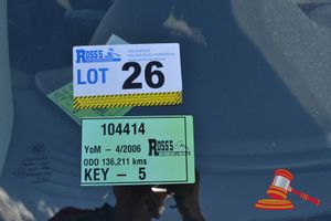09/2008 FORD FALCON SEDAN, WHITE, 4X2, AUTO, P/S, A/C, 6 CYL PETROL, (REG# 1CXQ647 LIC: 22.9.17, ODO# 179,393 KMS SHOWING ON CLOCK, VIN# 6FPAAAJGSW8L99651, ENG# JGSW8L99651, TOW HITCH, KEY# 46 (W6633)
