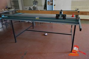 Woodworking Equipment including bandsaw, thicknesser, planer, dust collection unit with ducting.
