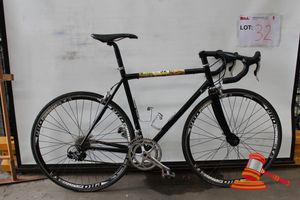 BLACK ROAD BIKE, BRAND UNKNOWN VELOCE ASSEMBLY GEARS ATTACHED NEAR BREAKS (IR - 220517 2020 16057/0001)