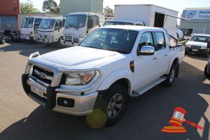 11/2009 FORD RANGER PK XLT DUAL CAB, WHITE, 4X4, AUTO, P/S, A/C, DIESEL, REG# 1DFL781 10.12.17, ODO# 177,262 KMS SHOWING ON CLOCK, VIN# MNAUSFE909W835052, FACTORY FITTED, ALUMINIUM BULLBAR, SIDE STEPS, SPORTS BAR, TOW HITCH, TONNEAU COVER, MINOR PANEL DAMAGE TO TAIL GATE, KEY# 25 (W6995)