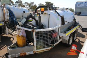Trailers: 2x 3500L Trailer Mounted Vacuum Tanks, 1x 2500L Trailer Mounted Vacuum Tank, 8x6 Enclosed Tandem Trailer