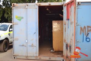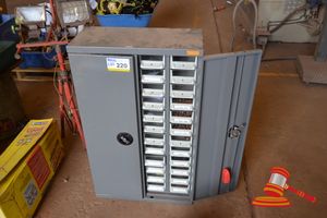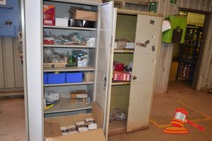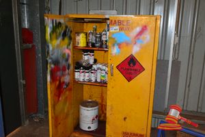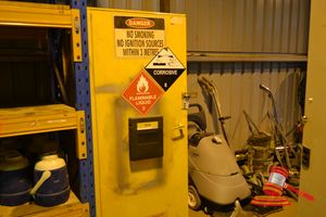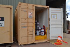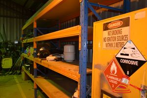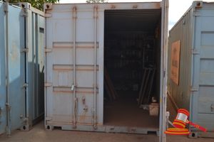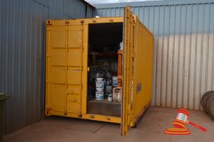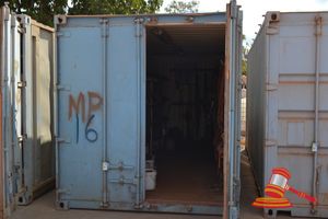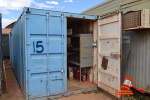 GREY 20' SEA CONTAINER AND CONTENTS INC SHELVING & DANGEROUS GOODS CABINET (A/N 17)