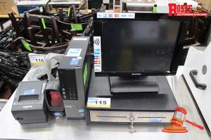 POS SYSTEM WITH CASH DRAW, DELL OPTIPLEX 940, MONITOR, BARCODE SCANNER, PRINTER AND ASSORTED CABLES