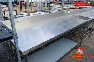 STAINLESS STEEL KITCHEN BENCH 900MM WITH SPLASHBACK AND UNDERSHELF