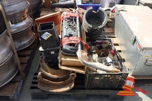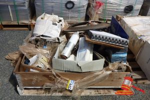 PALLET OF ASSORTED SUNDRIES INCLUDING FUEL FILTER, PETRONAS PARAFLU, FIRE EXTINGUISHER ETC