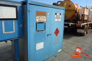 and Sundry Items: Chain Mesh, Gluts, Jarrah Blocks, Plastic Bollards, Saw Table, Portaloos, Temporary Fencing, Commercial A/C Freezer Units, Orwak 5070 Compoactor System, Pallet Racking, Floodlights, Garden Equipment inc Mowers, Chainsaws, Blowers & Whipper Snippers, Waste Underbelly Tank, Skid Mounted Water Pod & Pump, Various Steel and Dangerious Goods Cabinets, Steel and Aluminium Steps, Qnty Roadwork Signs, Mooring Rope and more