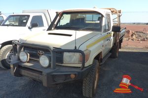 12/2010 TOYOTA LANDCRUISER WORKMATE SINGLE CAB TRAY BACK, WHITE, 4X4, MANUAL, P/S, A/C, V8 TURBO DIESEL, BULLBAR, SPOTLIGHTS, UNDER TRAY WATER TANK, TRAY MOUNTED STEEL TOOLBOX, TOW ASSEMBLY, REG NO - (UNLIC) ODO - 170,891KMS SHOWING, VIN NO - JTELV71J000019285, ENG NO - 1VD0107552 (A/NO- 03P5416) (S44#44380) (DR#64184) (KS-2904)