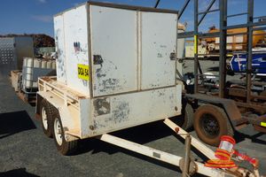 BOX TRAILER 2.7M X 12.M BLUE TANDEM, TRAY MOUNTED WELDER/GENERATOR, 4 CYLINDER DIESEL PERKINS, REG NO - (UNLIC) ENG NO - 2387 (PERKINS) VIN NO - NOT SIGHTED (KS-2916)