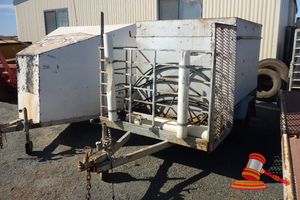 1974 CUSTOM 4m X 1.8m COVERED TRAILER WHITE TANDEM CONTAINS ELECTRIC AIR PUMP, LIGHTING (INTERNAL) GPO'S RCD BOARD, ALUMINIUM TANK, FITTED WITH STEEL CANOPY WITH REAR OPENING DOOR & 4 X FOLD OUT SIDE DOORS, STABILIZERS, REG NO - (UNLIC) VIN NO - WNEVTRL74E525 (KS-)