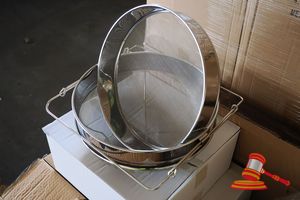 1 x CARTON OF STAINLESS STEEL HONEY GATE PAILS WITH FLAT COVERS- 4 x IN A CARTON S/M/L/XL- STACKED INSIDE ONE ANOTHER
