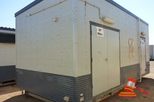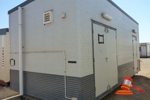 TRANSPORTABLE BUILDING, UNISEX ABLUTION ATCO 07/2014 9.7m X 3.4m X 3.3m INCLUDES MENS AND WOMENS TOILET FACILITIES HAND WASH AND DRY EQUIPMENT (SERIAL#310142985) (TB-425) (OMR-00112) (MP77#5854)