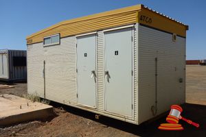 TRANSPORTABLE BUILDING, ABLUTION BLOCK, ATCO, 6M X 3M X 3.2M, INCLUDES MENS AND WOMENS TOILET FACILITIES AND INTERNAL LIGHTING, 36129994. (TB-167, (OMR#00112) (MP77#5854)